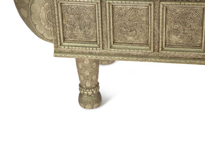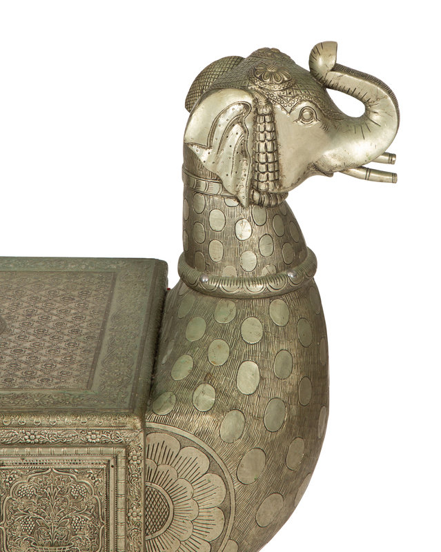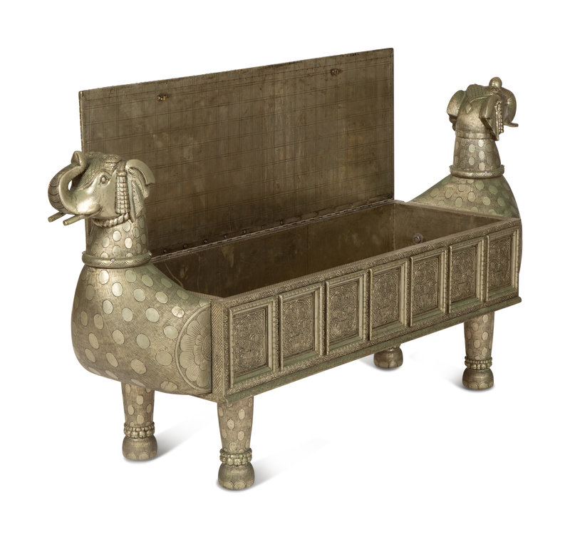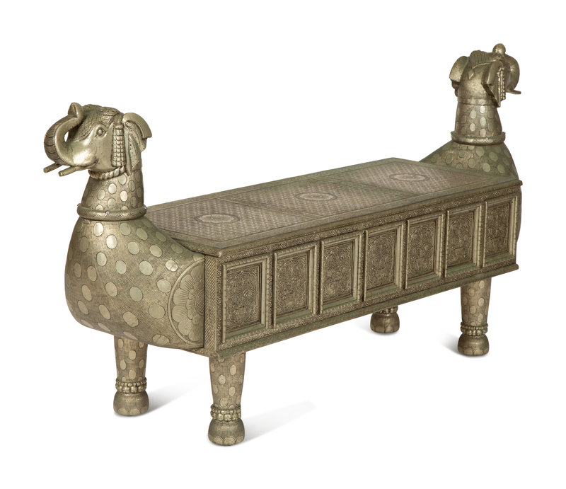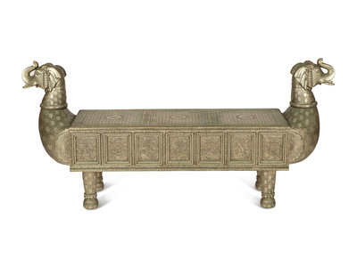 A South-East Asian Pressed Metal Bench with Elephant Form Ends
