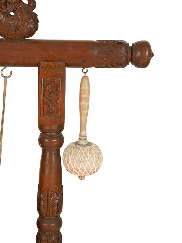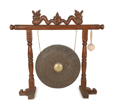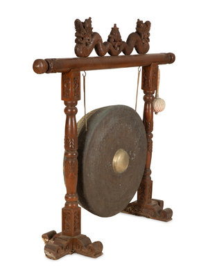 A Indonesian Gamelan Gong on Carved Wood Stand with Mallet