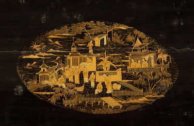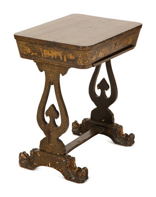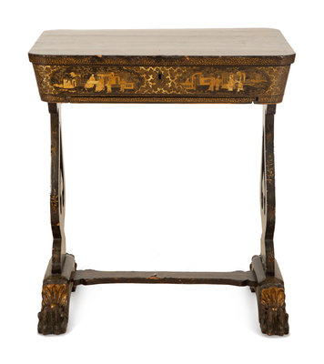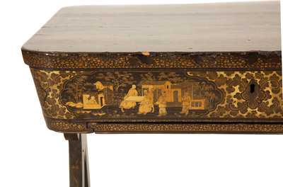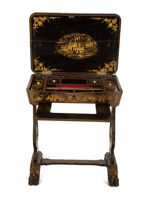 A Chinese Export Black and Gilt Lacquer Sewing Table