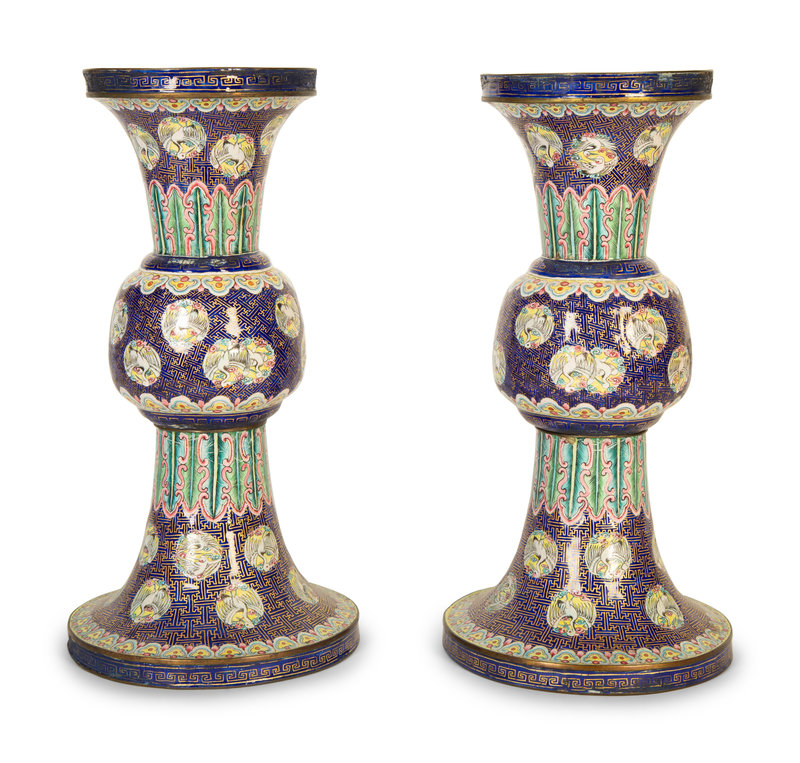 A Pair of Chinese Export Enamel on Copper Gu Vases