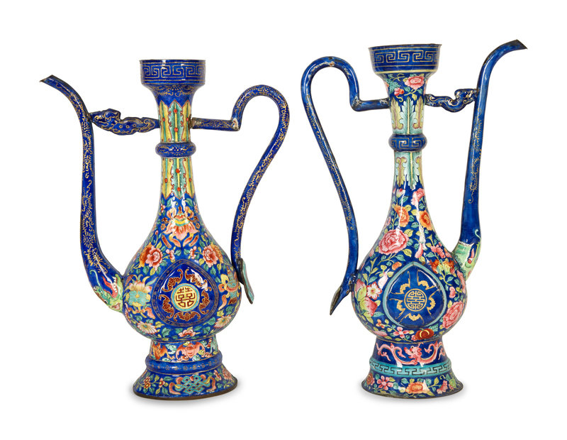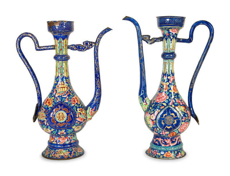 A Pair of Chinese Enamel on Copper Wine Ewers
