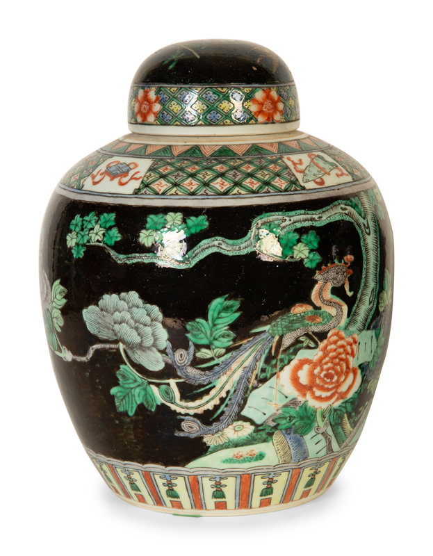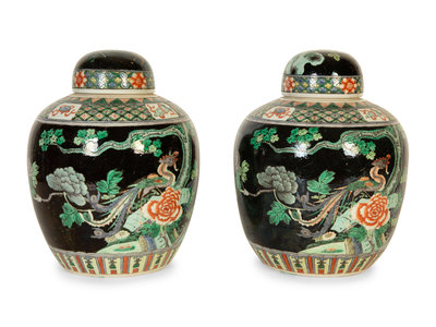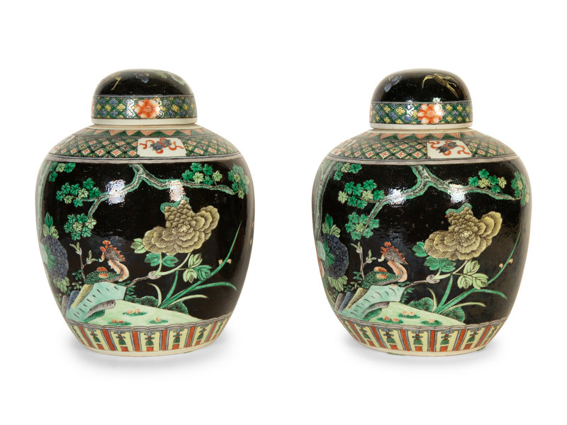 A Pair of Chinese Famille Noire Porcelain Covered Ginger Jars and a Japanese Baluster Vase