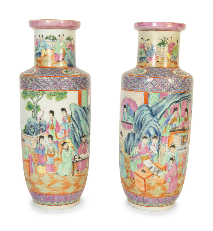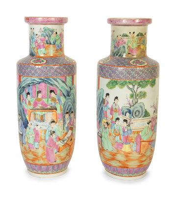 A Pair of Chinese Export Famille Rose Porcelain Vases