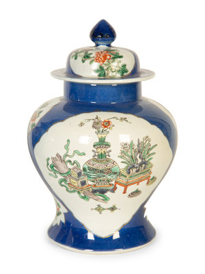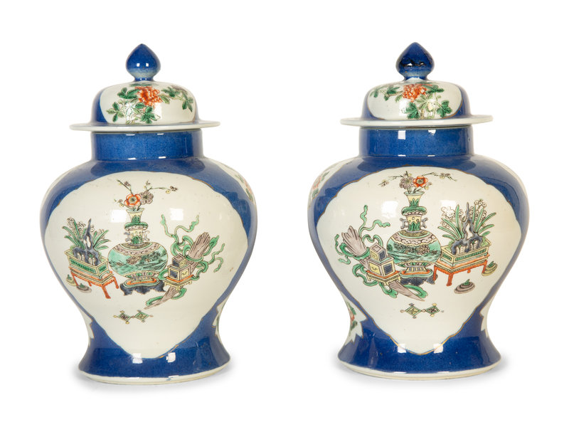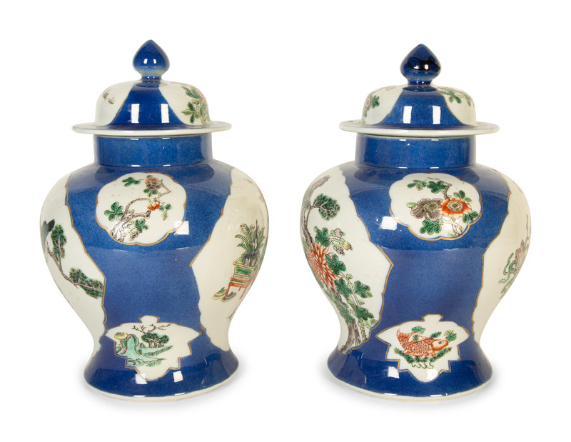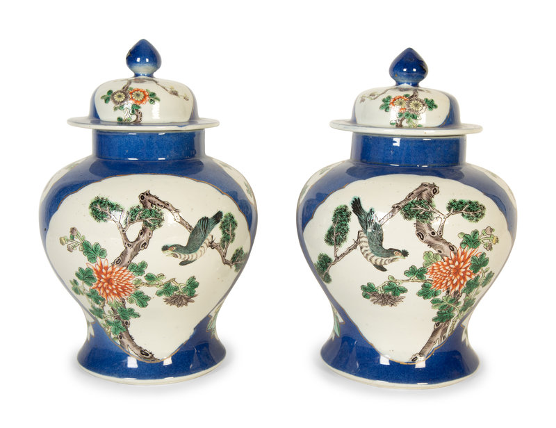A Pair of Chinese Export Famille Verte Porcelain Covered Ginger Jars
