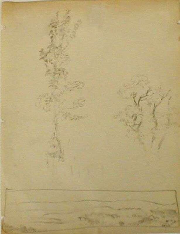 5 1/4 x 7 in. (13.34 x 17.78 cm), and three companions, Tree Study and Landscape