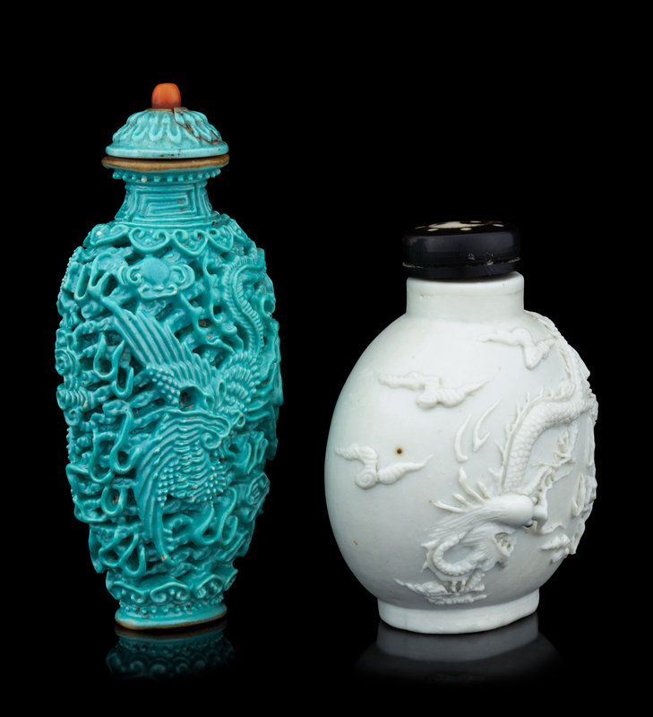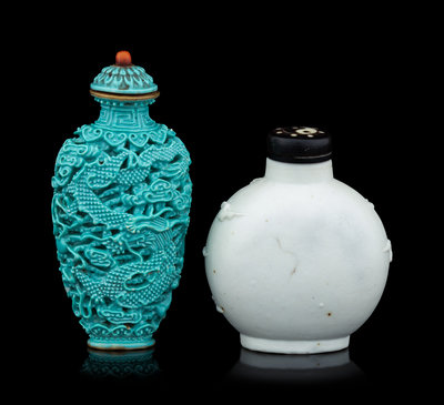 Two Molded Porcelain 'Dragon' Snuff Bottles