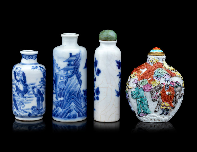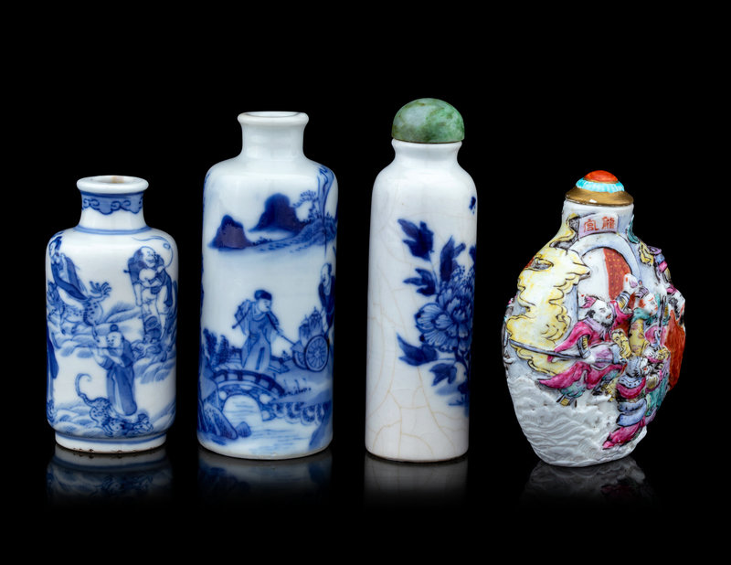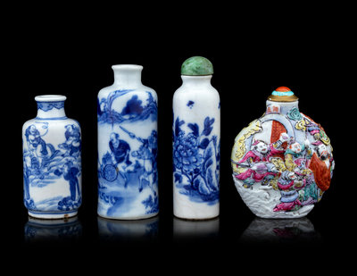清晚期 粉彩及青花鼻烟壺一組四隻