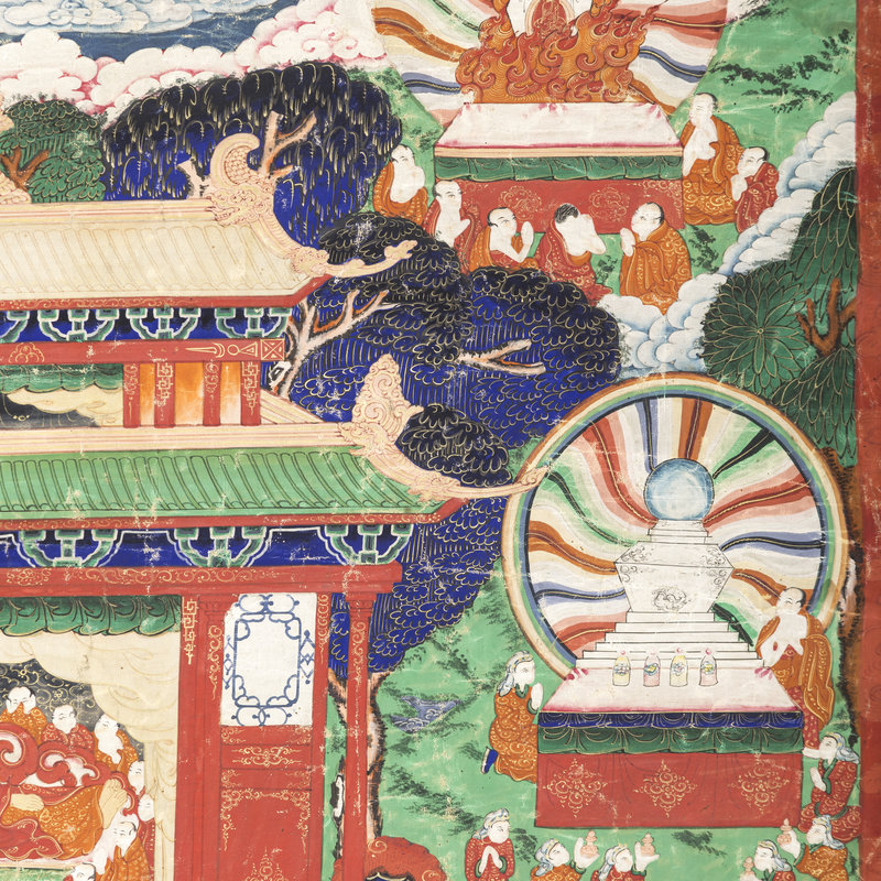 A Mongolian Thangka Depicting Stories from the Life of Buddha