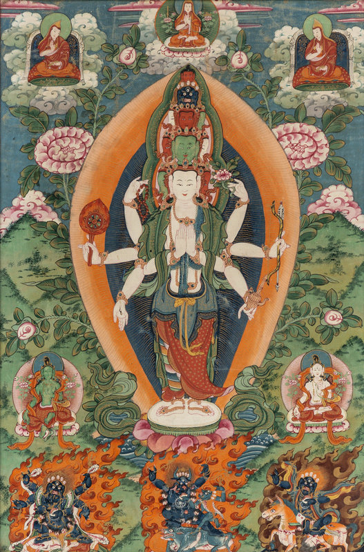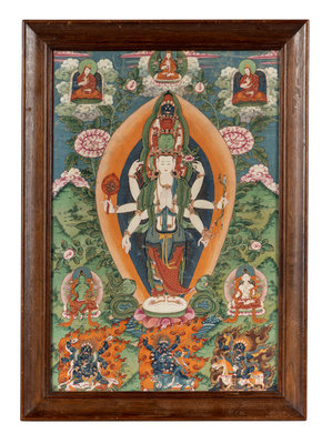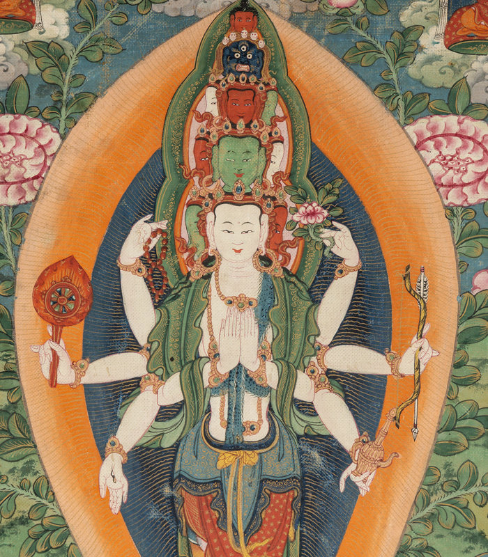A Tibetan Thangka Depicting Avalokiteshvara