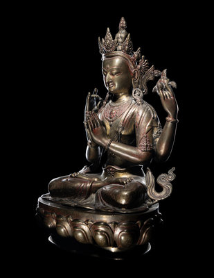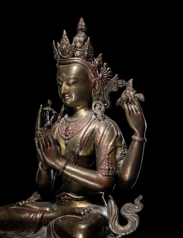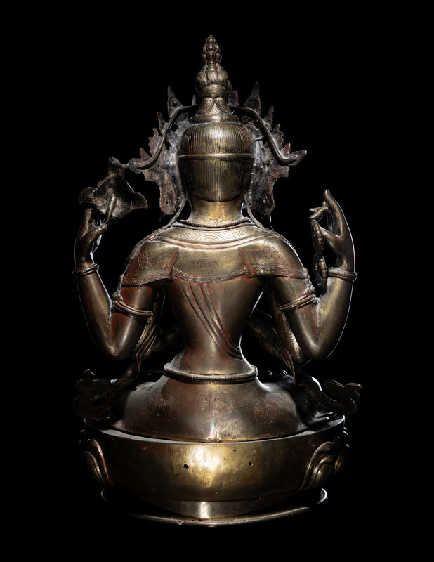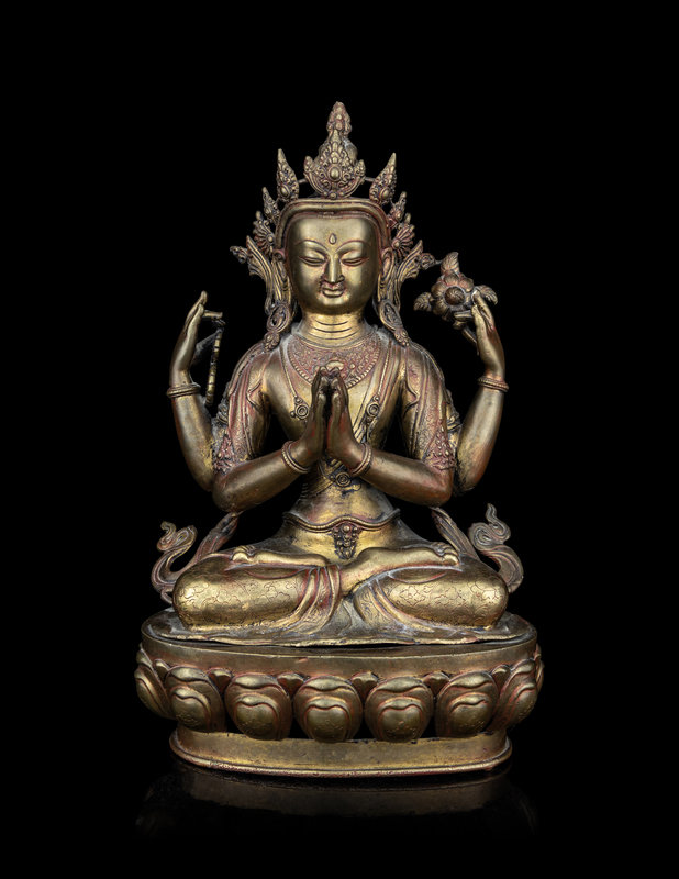 A Large Tibetan Gilt Bronze Figure of Shadakshari Lokeshvara