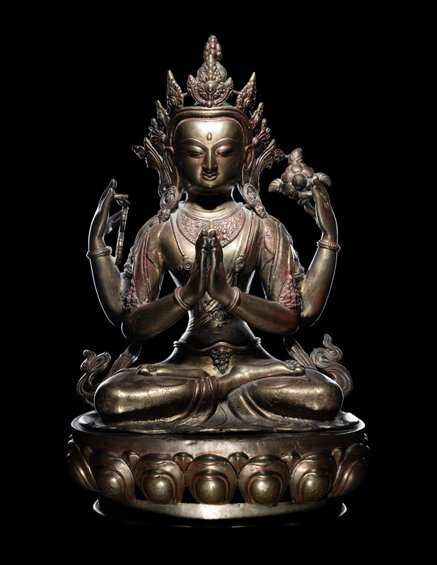 銅鎏金四臂觀音像