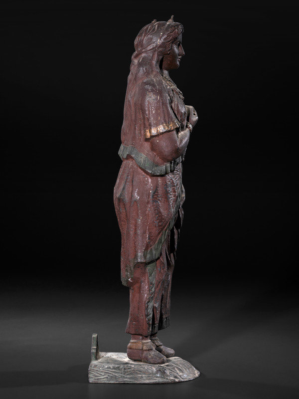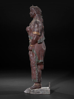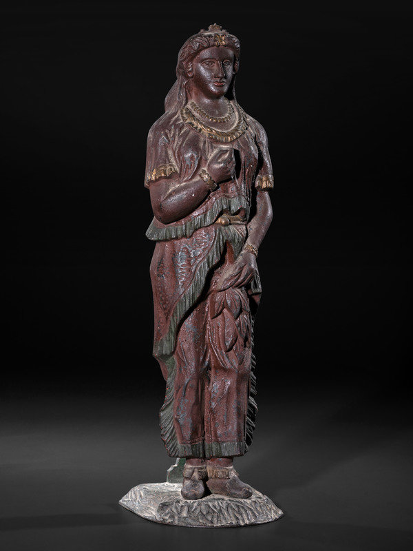 A Painted Cast Iron Tobacco Trade Figure of Native American Woman