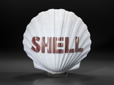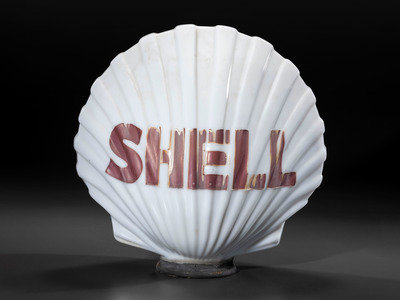 A Shell Milk Glass Clamshell Gas Pump Globe