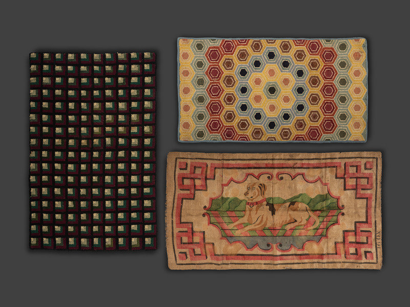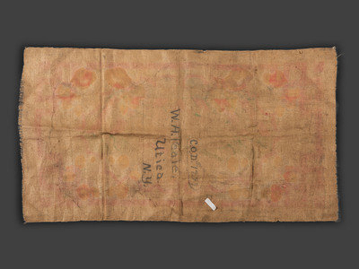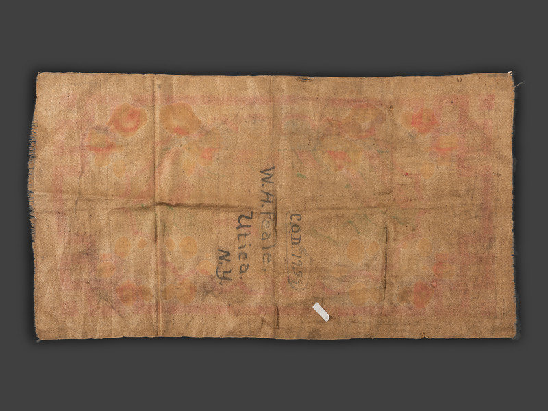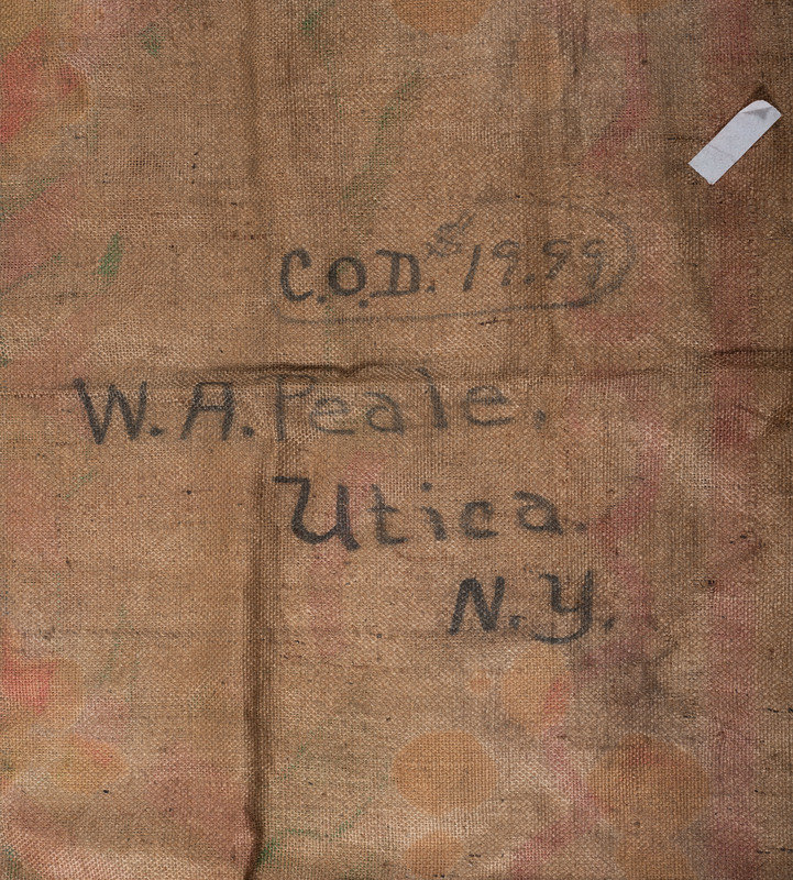 together with a hooked rug pattern on burlap of a recumbent dog, stamped No. 91 to right edge and inscribed C.O.D. $19.99 / W.A. Peale / Utica / N.Y to verso.