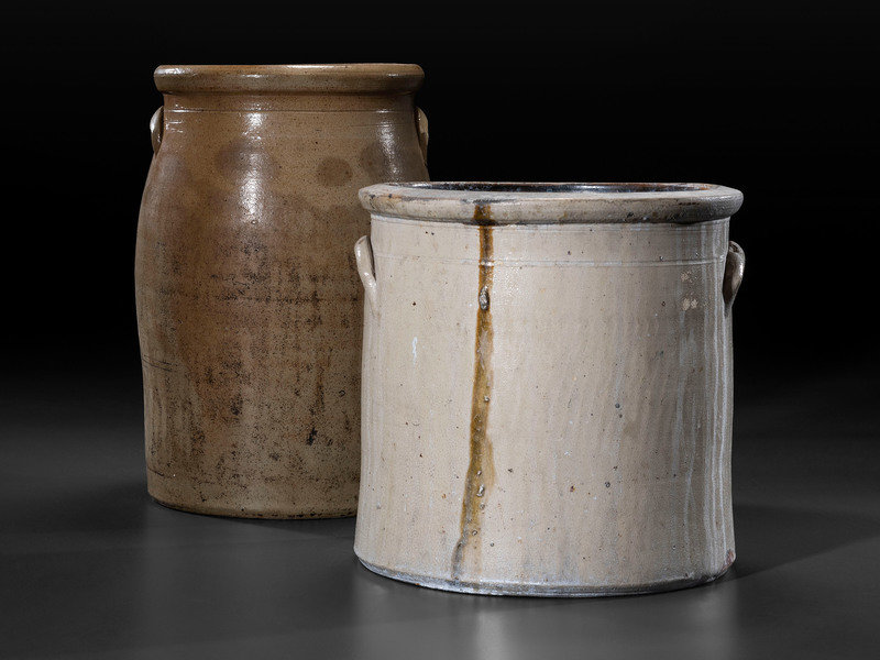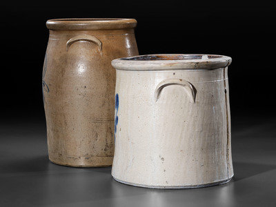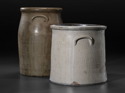 comprising a five-gallon crock with impressed capacity mark and a six-gallon jar with brushed capacity mark.