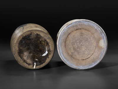 Two Cobalt Decorated Stoneware Vessels