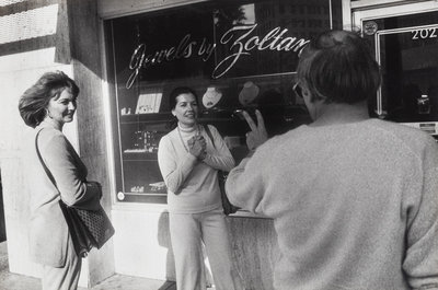 Untitled (Two fans encountering a personality making the peace sign, Beverly Hills), from "Women are Better than Men...", 1982