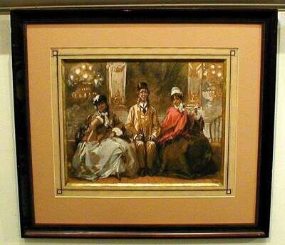 GENTLEMAN SEATED BETWEEN TWO BELLES