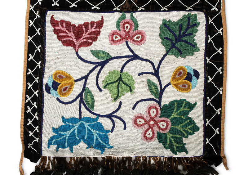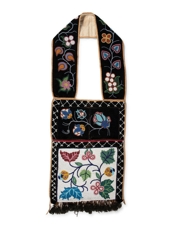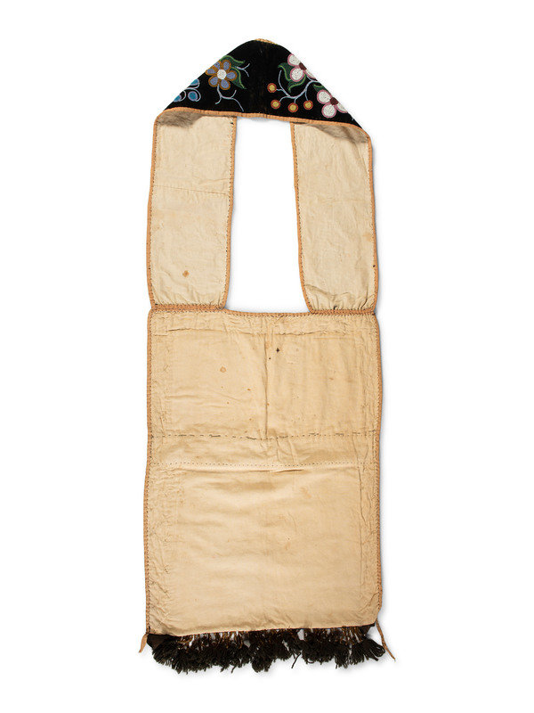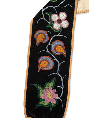 colorfully beaded with a floral design on black velveteen and backed with polished cotton