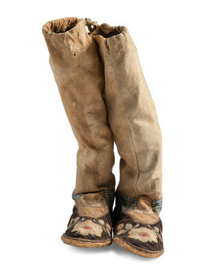 Cree Moosehair Embroidered Boot Moccasins and Vest