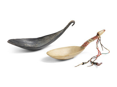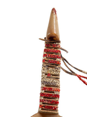 one with quill-wrapped handle and hide thong drops terminating with tin cones filled with horsehair