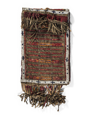 Sioux Quilled and Beaded Buffalo Hide Pouch