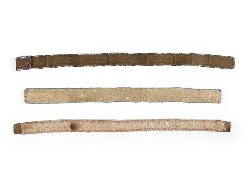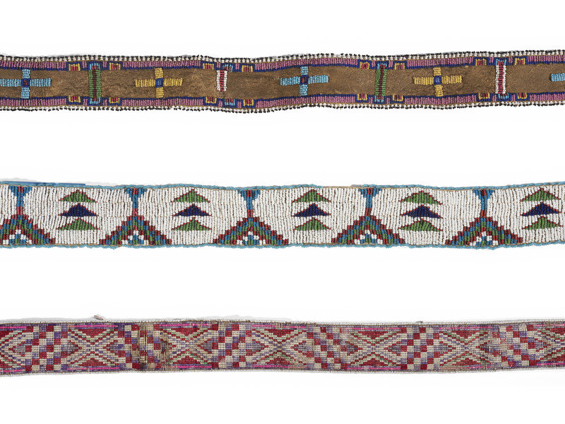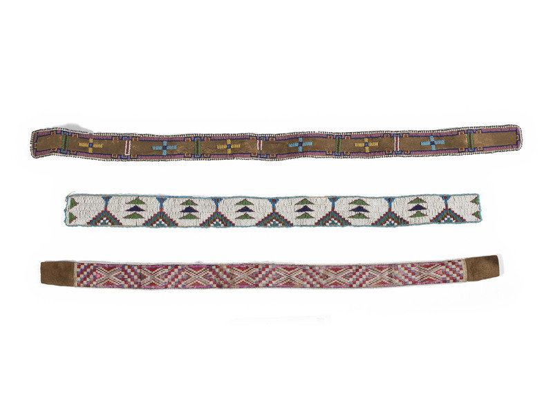 Plains Beaded Hide Strips and Athapaskan Quilled Hide Strip