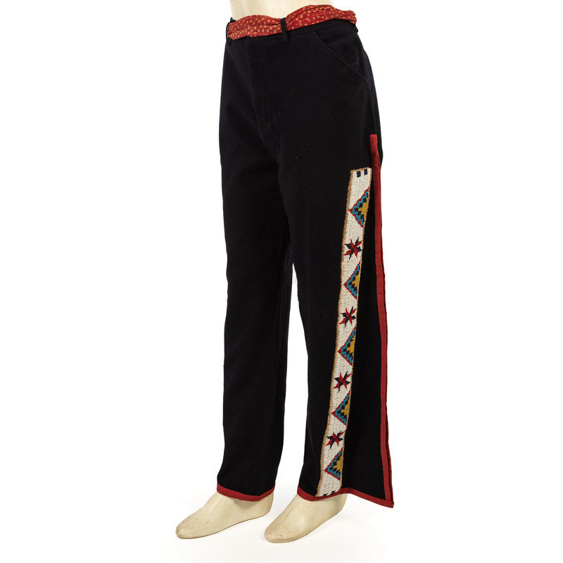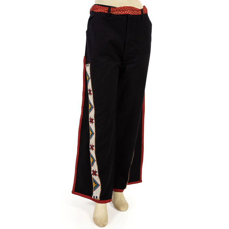 Sioux Beaded Hide Legging Strips, on Naval Wool Pants