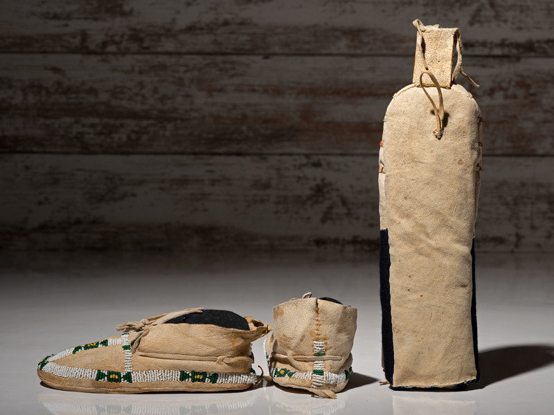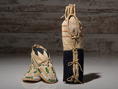 Cheyenne Child's Moccasins and Arapaho Doll Cradle