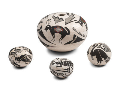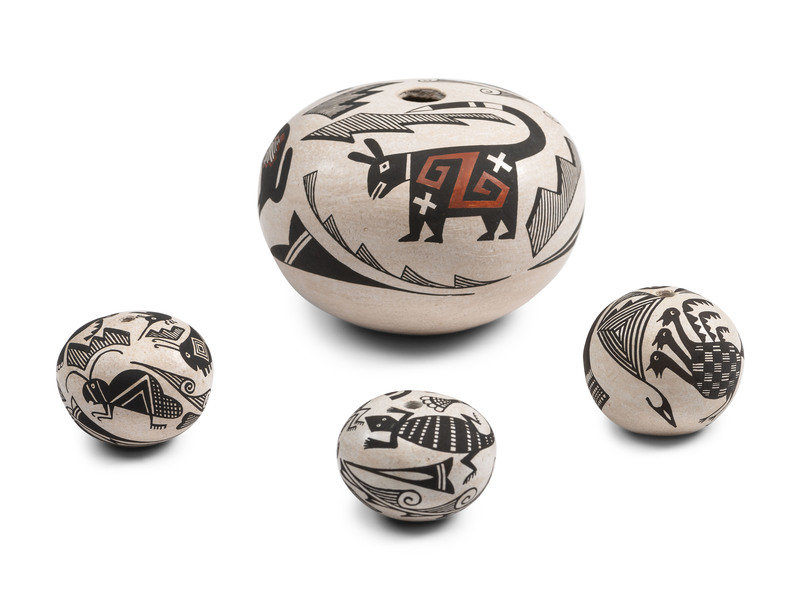 Mimbres-stye Pottery Seed Jars, with Animals