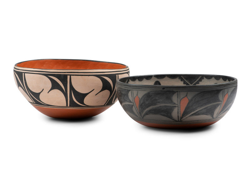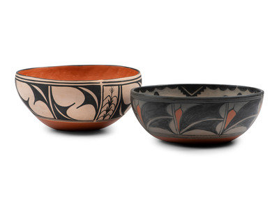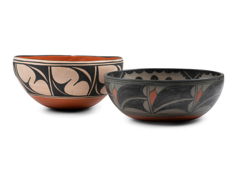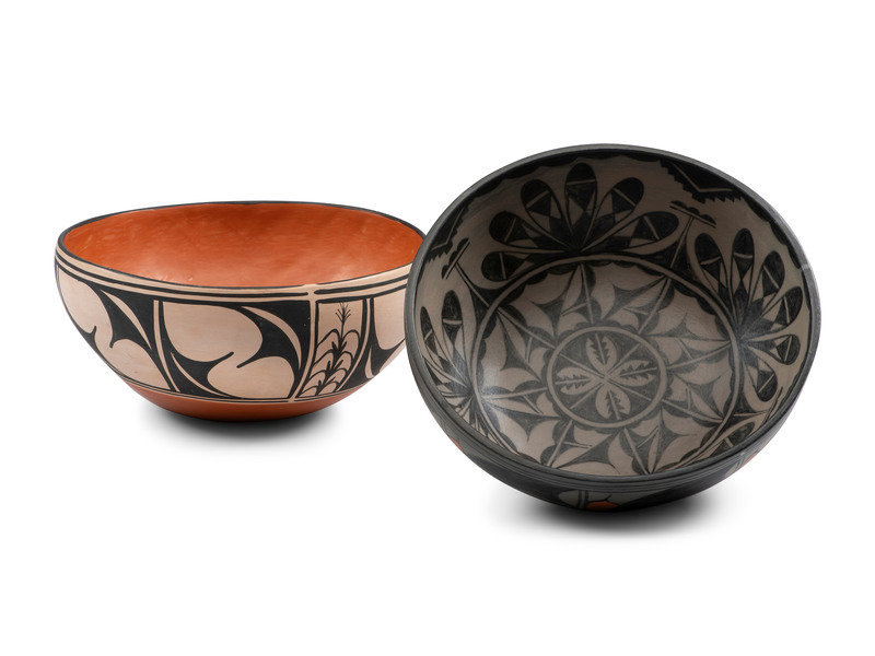 illegibly signed polychrome bowl, decorated on interior and exterior