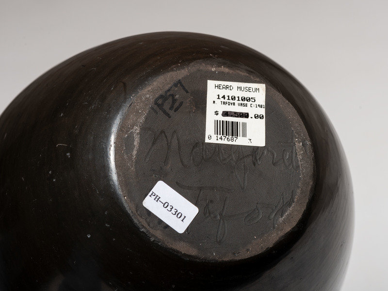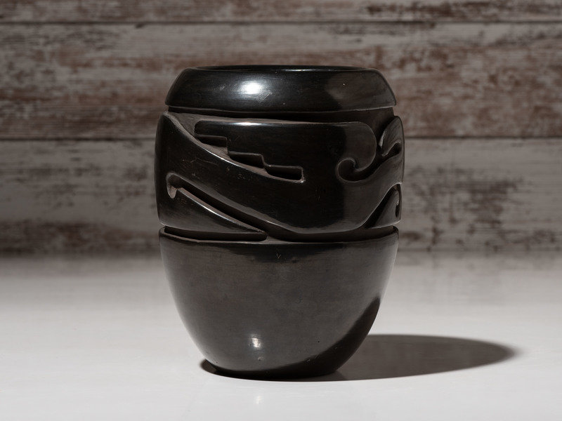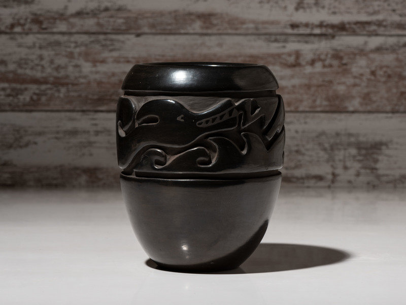 shoulder carved with Avanyu amid a band of waves; signed on base