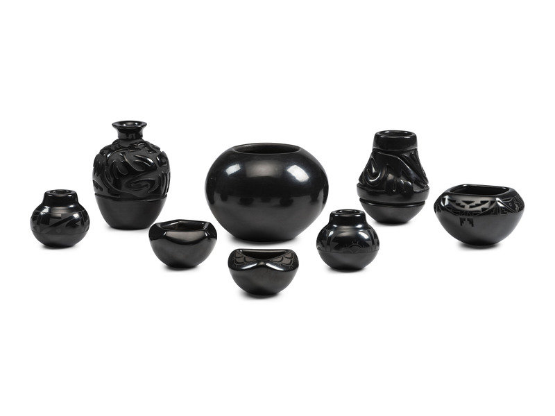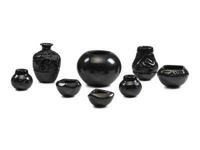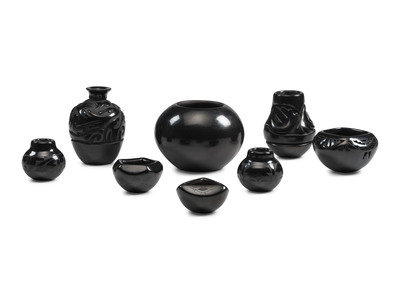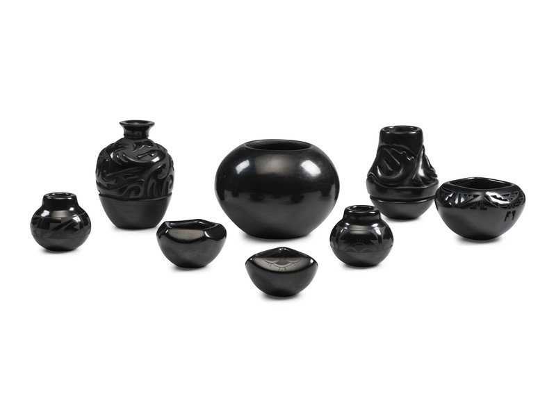 Santa Clara Carved and Painted Pottery Jars