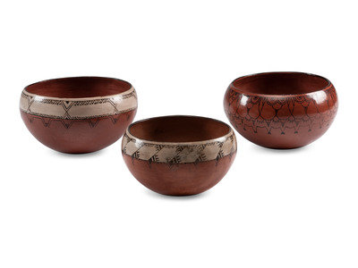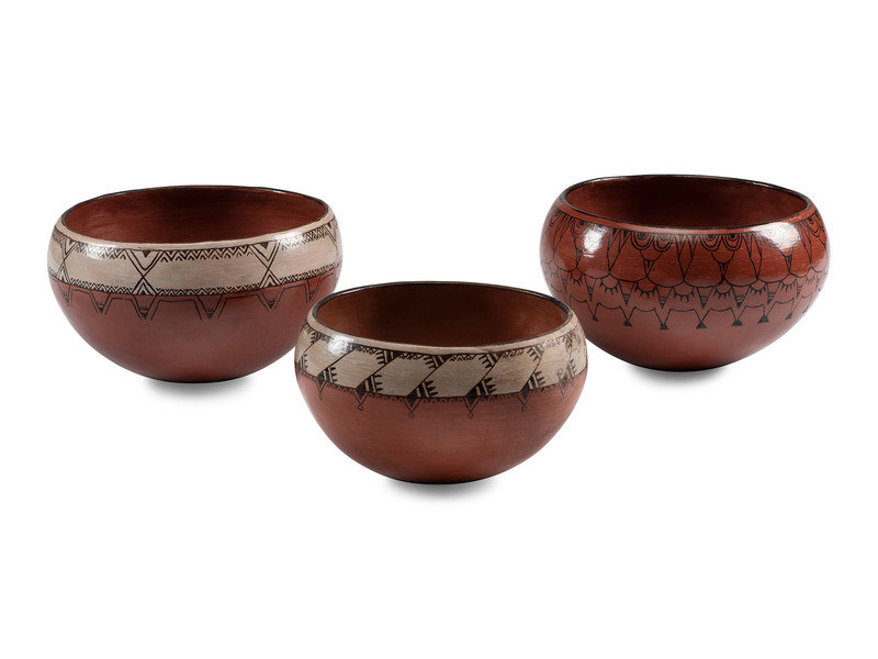 lot of 3, each finely decorated with geometric designs, all unsigned; includes: