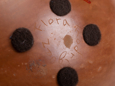 Flora Rodriguez jar with geometric designs; signed on base