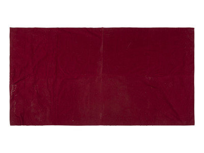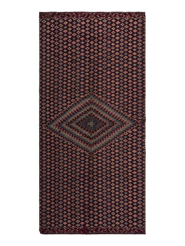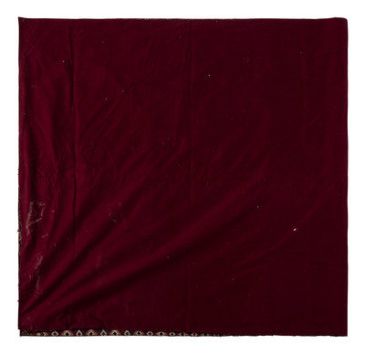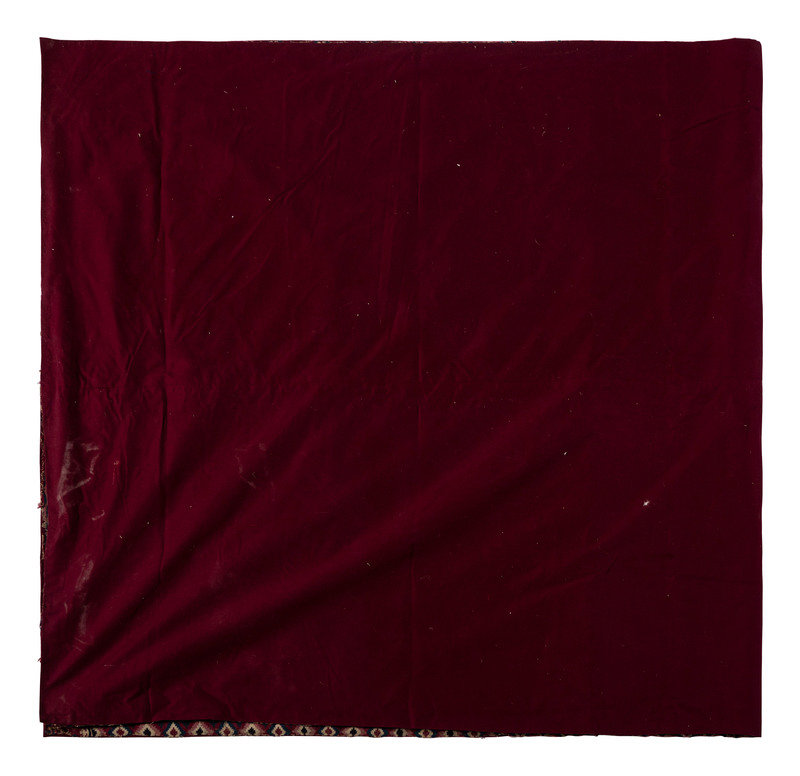 finely woven in two panels with an overall stacked diamond pattern; backed with polished red cotton