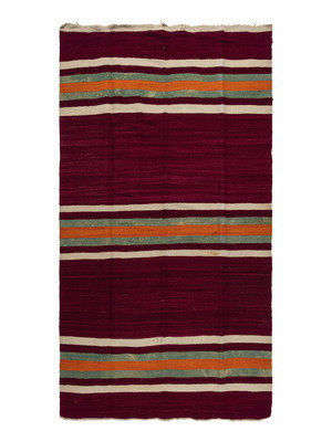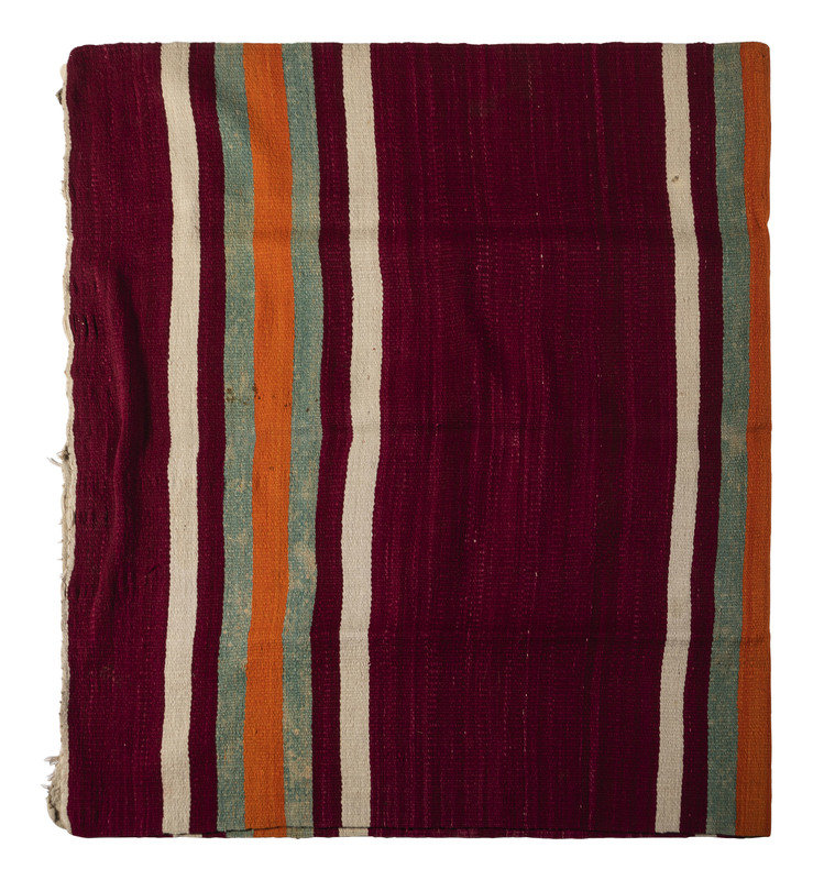 woven in purple, orange, green, and cream