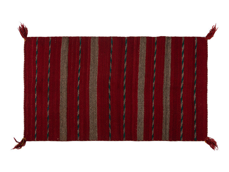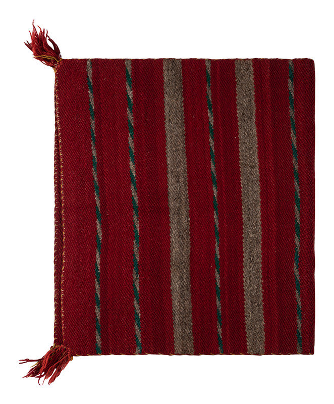 handspun wool woven with a diagonal twill in colors of red, blue-green, and gray