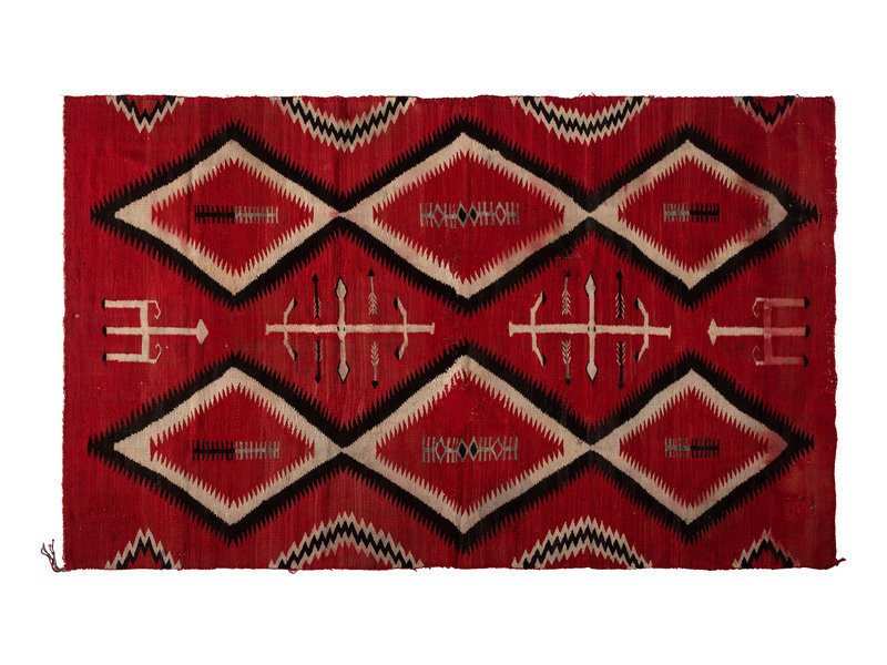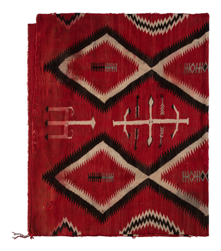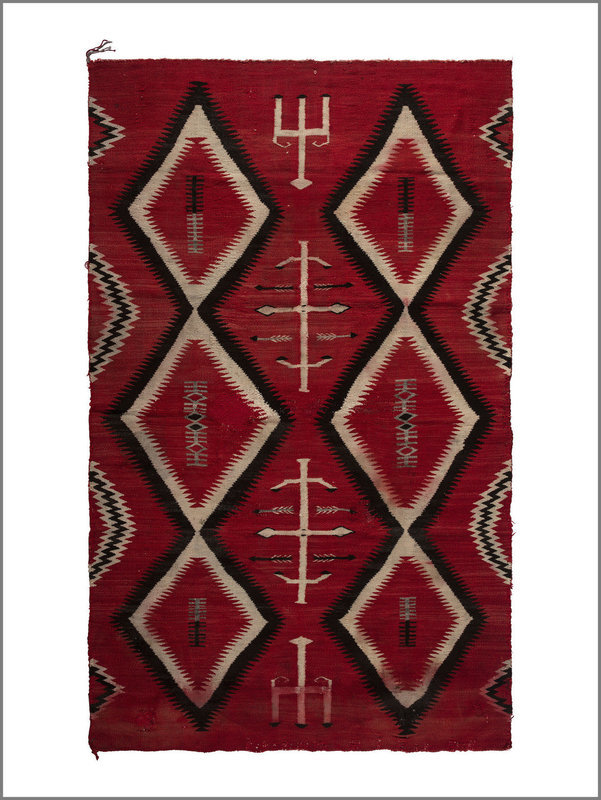 thick, handspun wool woven with serrated stacked diamonds, arrows, and corn stalk elements