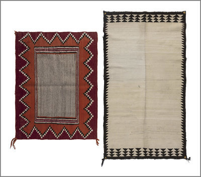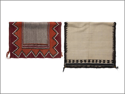 open field single saddle, handspun wool with colors of orange, red, black, cream, and gray