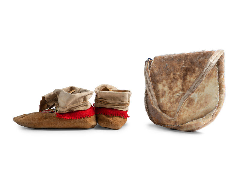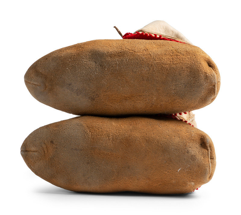 Athapaskan Moosehair Embroidered Hide Moccasins, PLUS