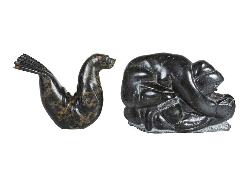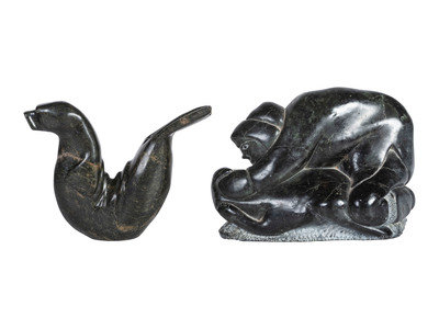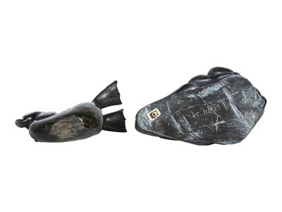 a hunter with animal; unknown artist, signed in syllabics and with disk number 5-14830