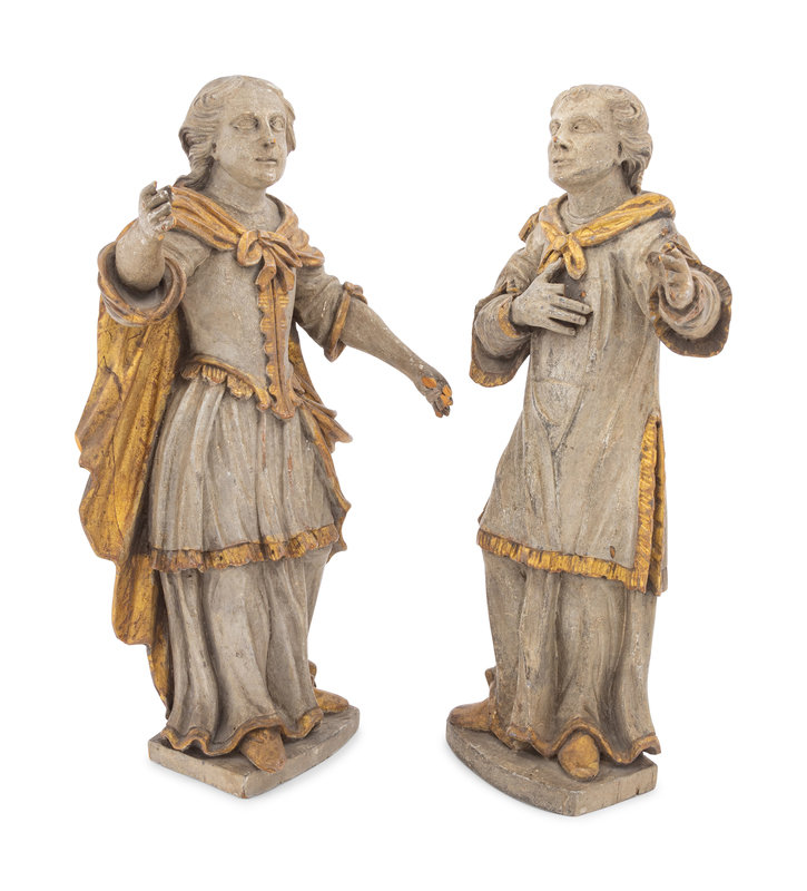 A Pair of Continental Painted and Parcel-Gilt Figures