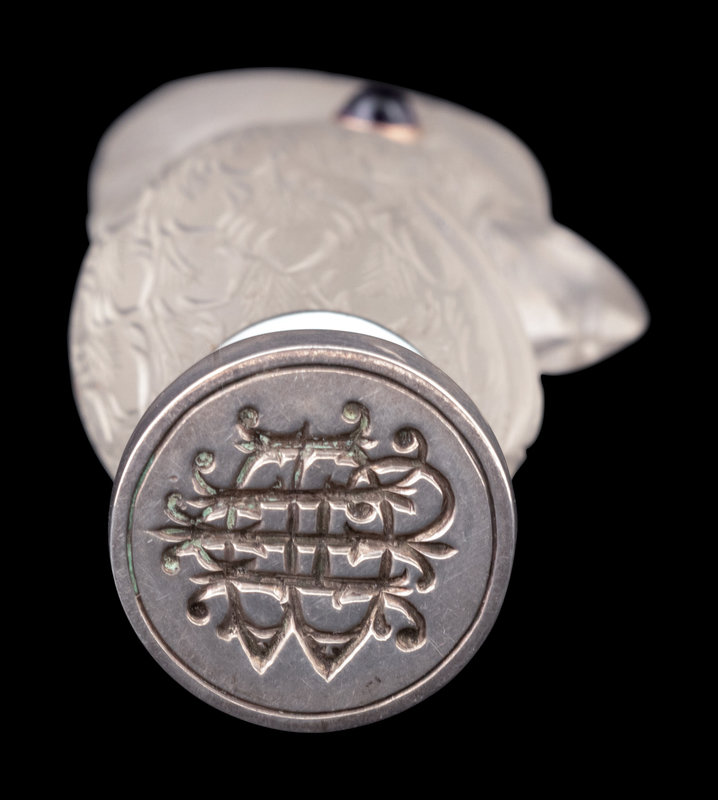 having amethyst cabochon eyes, the matrix with an engraved monogram.