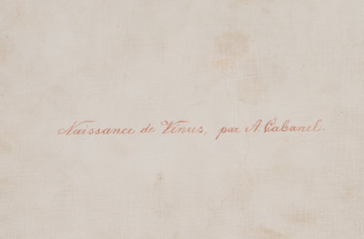 signed indistinctly and inscribed Wien (lower left), with an impressed scepter mark above an S, numbered 33 20 and titled Naissance de Vénus, par A. Cabanel in iron red script to the reverse.