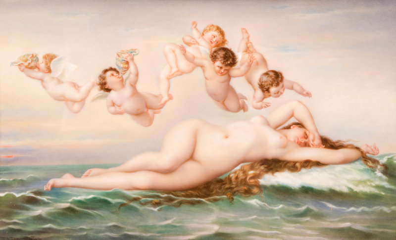 A Berlin (K.P.M.) Porcelain Plaque Depicting "The Birth of Venus" After Alexandre Cabanel
