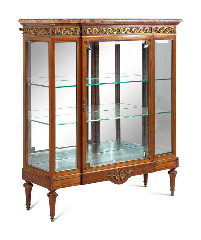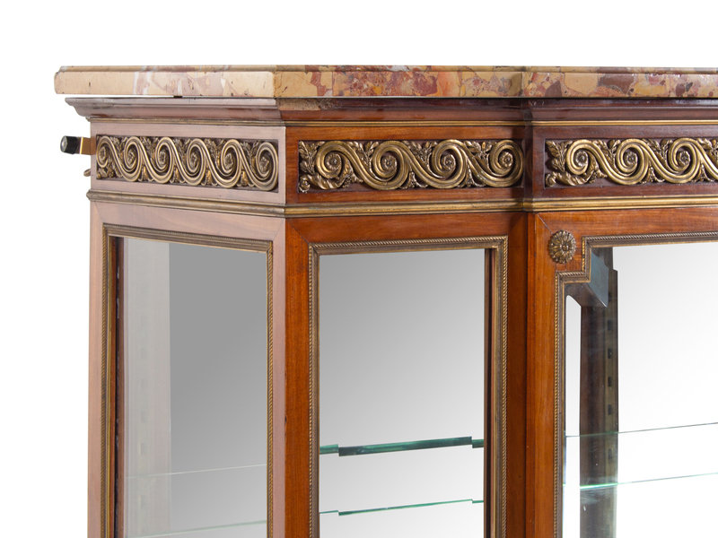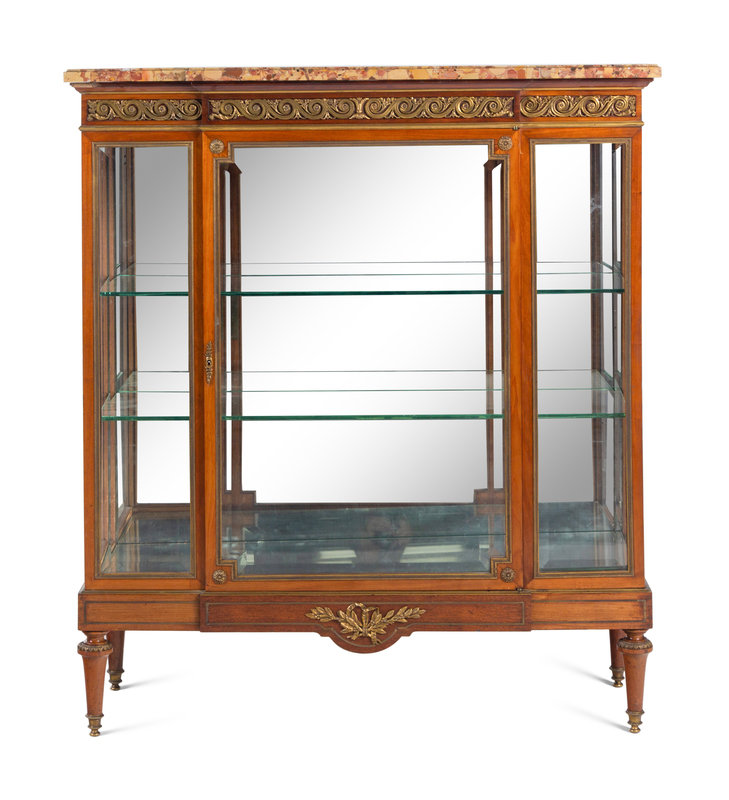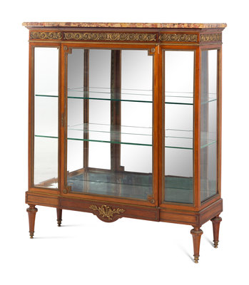 A Louis XVI Style Gilt Metal-Mounted Marble-Top Vitrine Cabinet