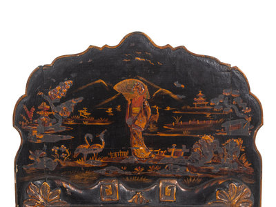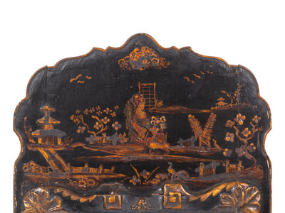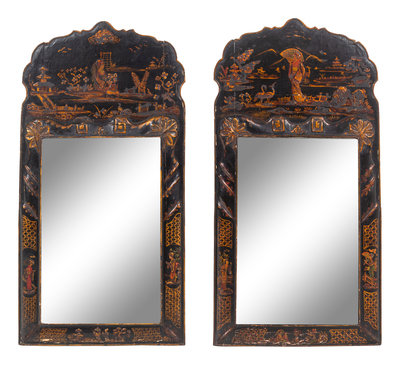 A Pair of Queen Anne Style Black Japanned Mirrors