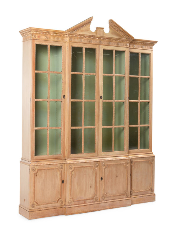 A George III Style Carved Pine Breakfront Bookcase