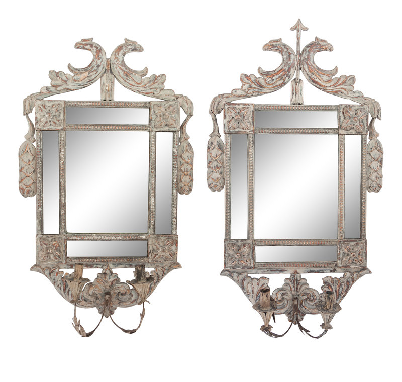 A Pair of Regency Painted Girandole Mirrors